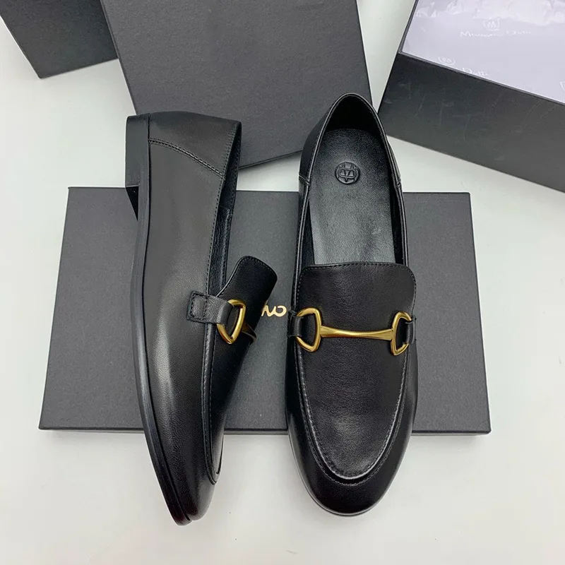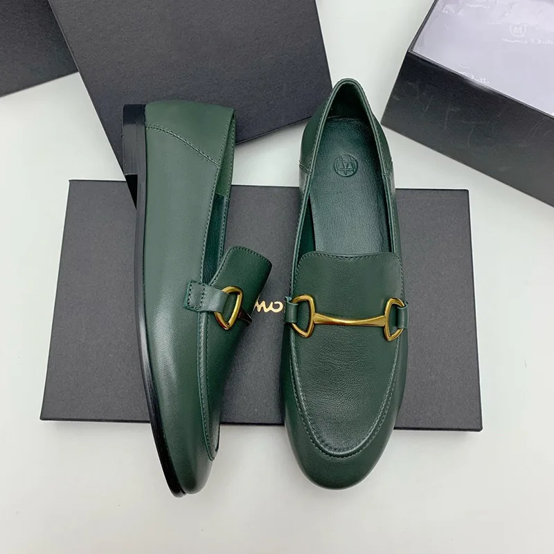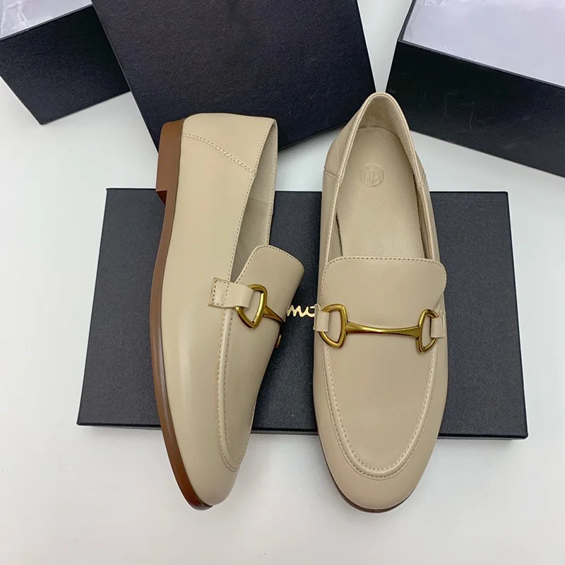 High-quality Genuine Leather Flats Shoes Woman Loafers Fashion Autumn Single Shoe Slip-on Beige Lazy Loafers Chaussure Femme